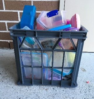 This entire crate of plastic containers is going to be sent to landfill today.